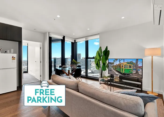 Das 70 m² große Apartment Docklands Skyline Views - Luxury Stay With Panoramic Views - Pool, Gym, Free Parking Access Melbourne City befindet sich im Zentrum von Melbourne City, in einer Entfernung von nur 5 Gehminuten vom Victoria Police Museum. Während ihres Aufenthalts im Apartment können die Gäste das Melbourne Aquarium besuchen, das 650 Meter von hier entfernt liegt, und die Aussicht auf den das Meer genießen oder sich am ein privater Swimmingpool entspannen.